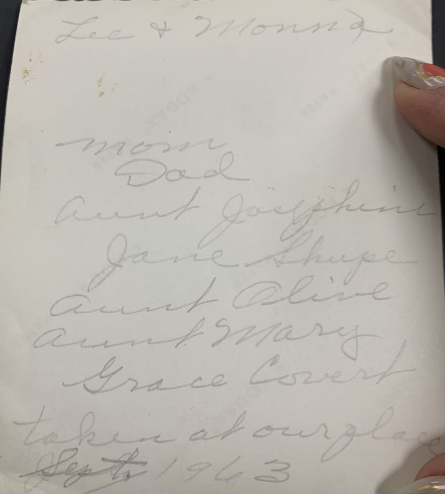 There are names on the back of a few of the pictures. Some of those names are Jane Shupe, Grace Covert, Chloe and George, aunt Josephine and aunt Mary.