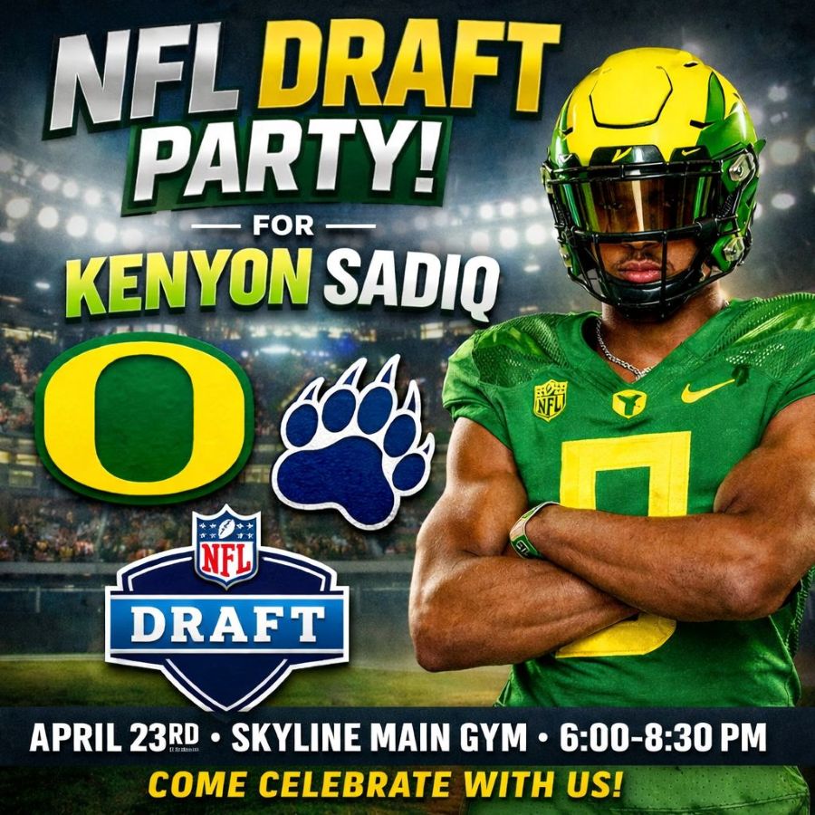 IDAHO FALLS — Skyline High will host an NFL draft party for former Grizzlies standout Kenyon Sadiq on April 23.
