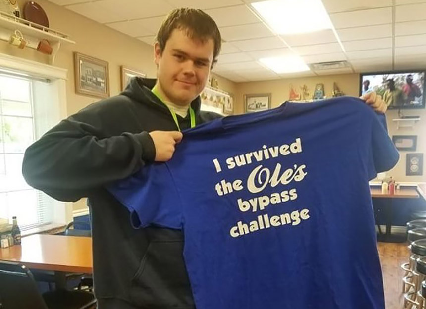 Lehi Vang currently holds the Ole’s Diner record. He scarfed all that food down in 11 minutes and 6 seconds. And no, he didn’t need to see a doctor.